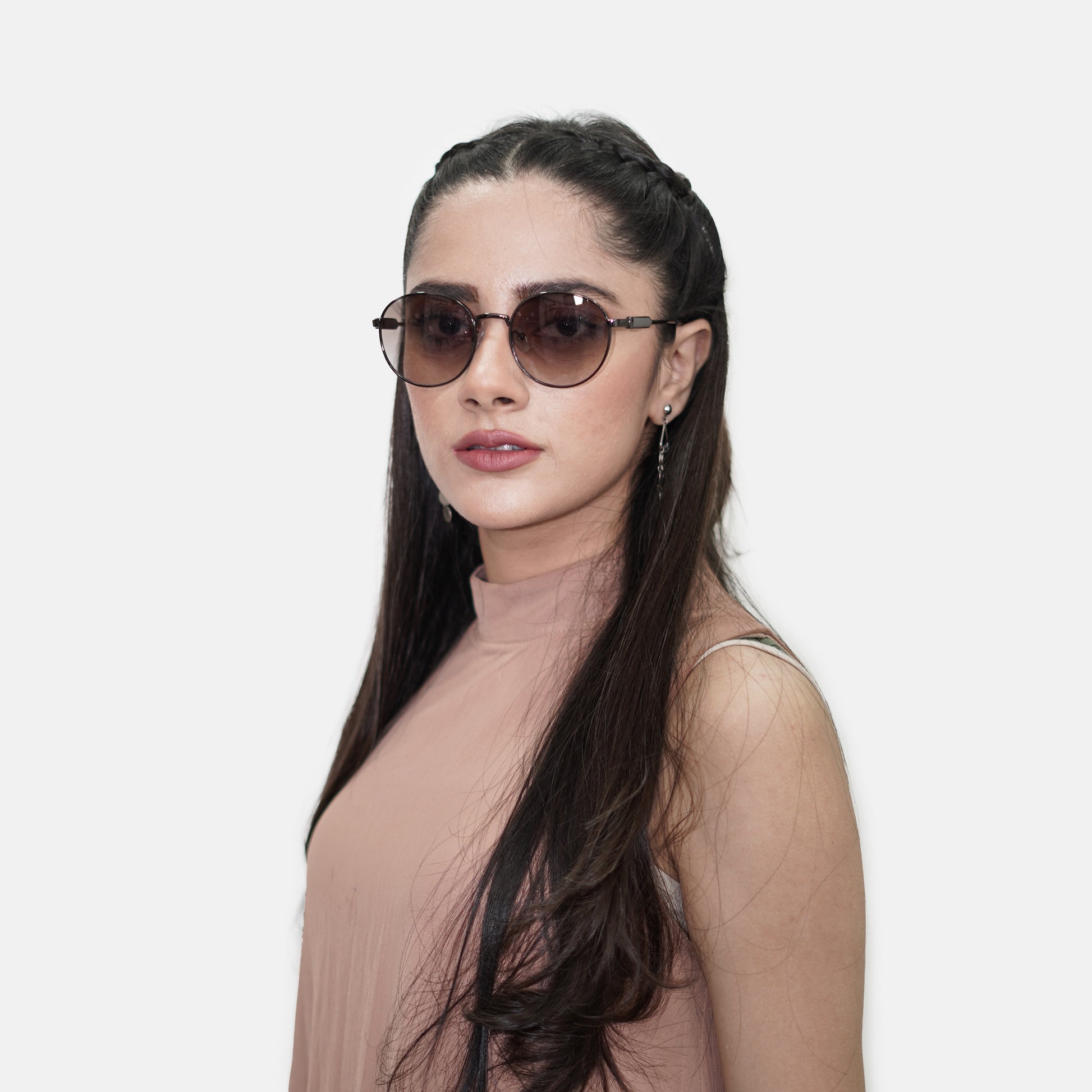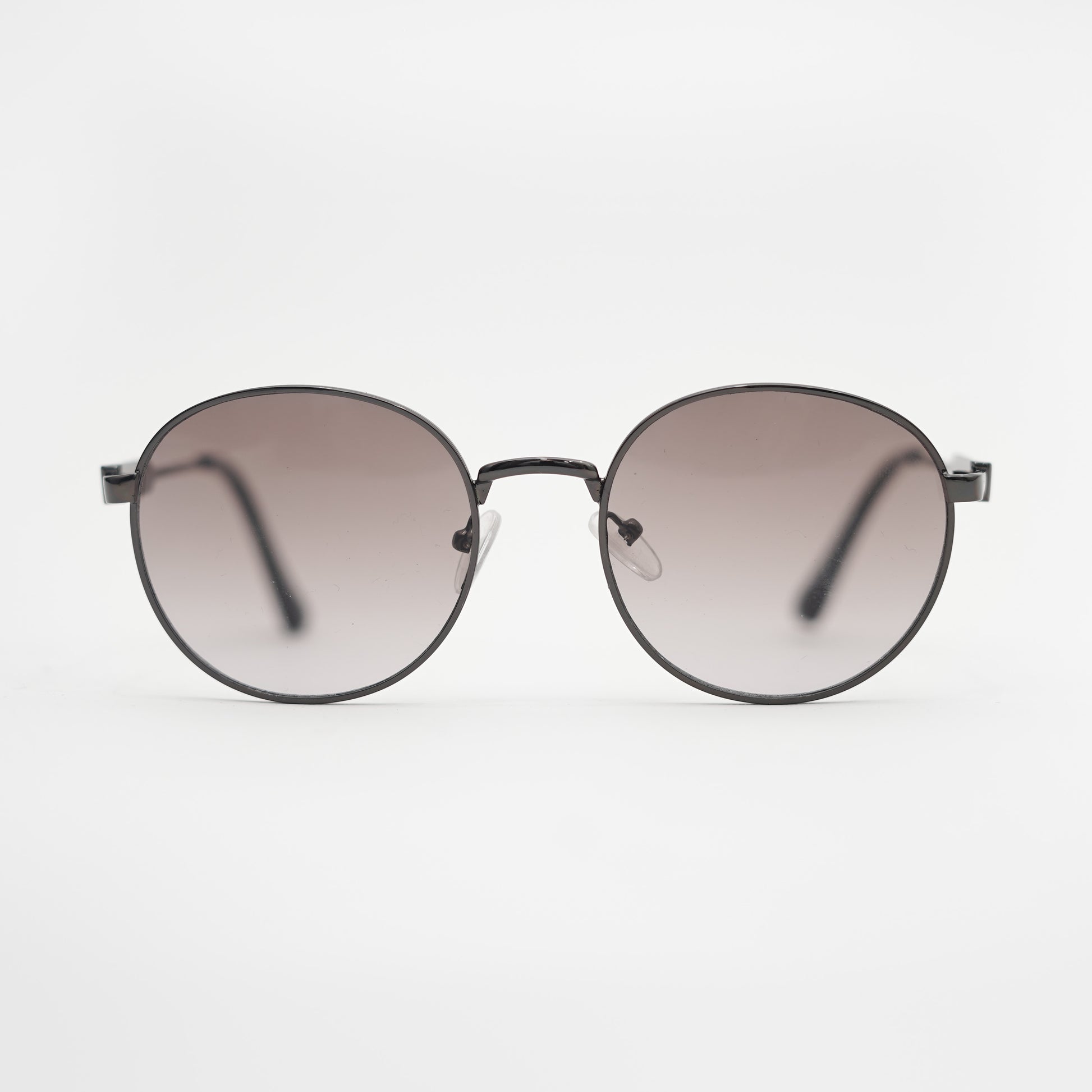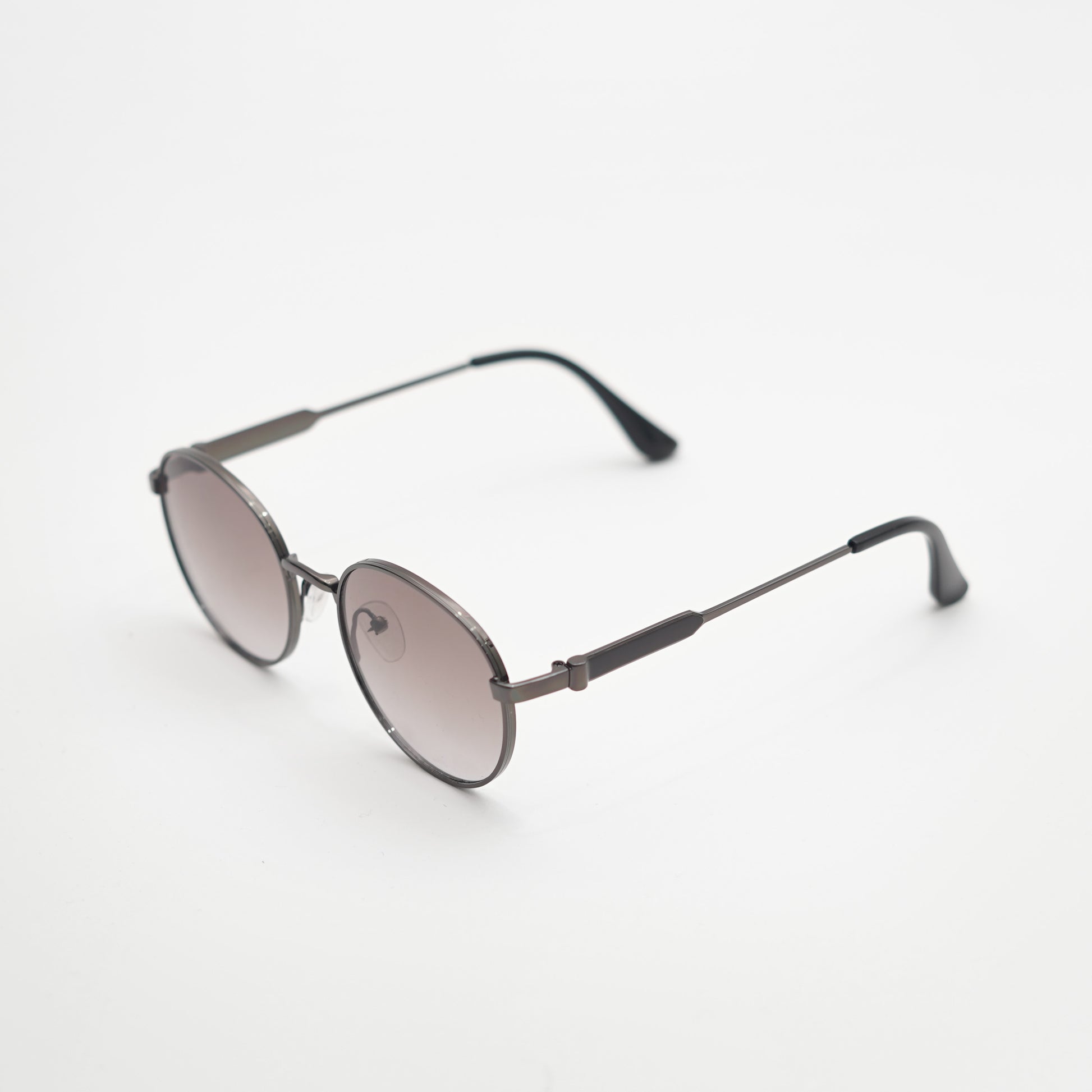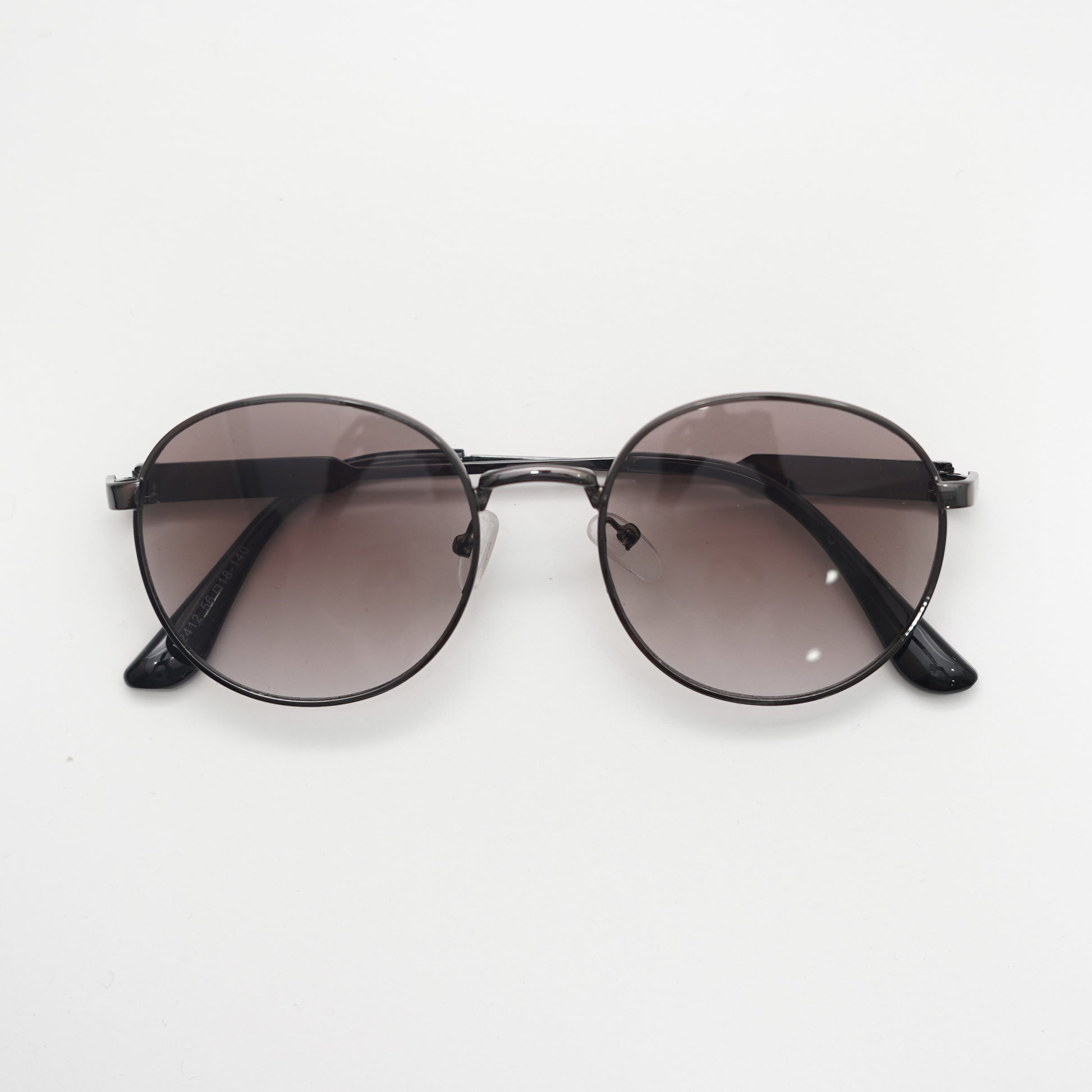Metal black Round frame with brownish-black shaded UV protected glasses.