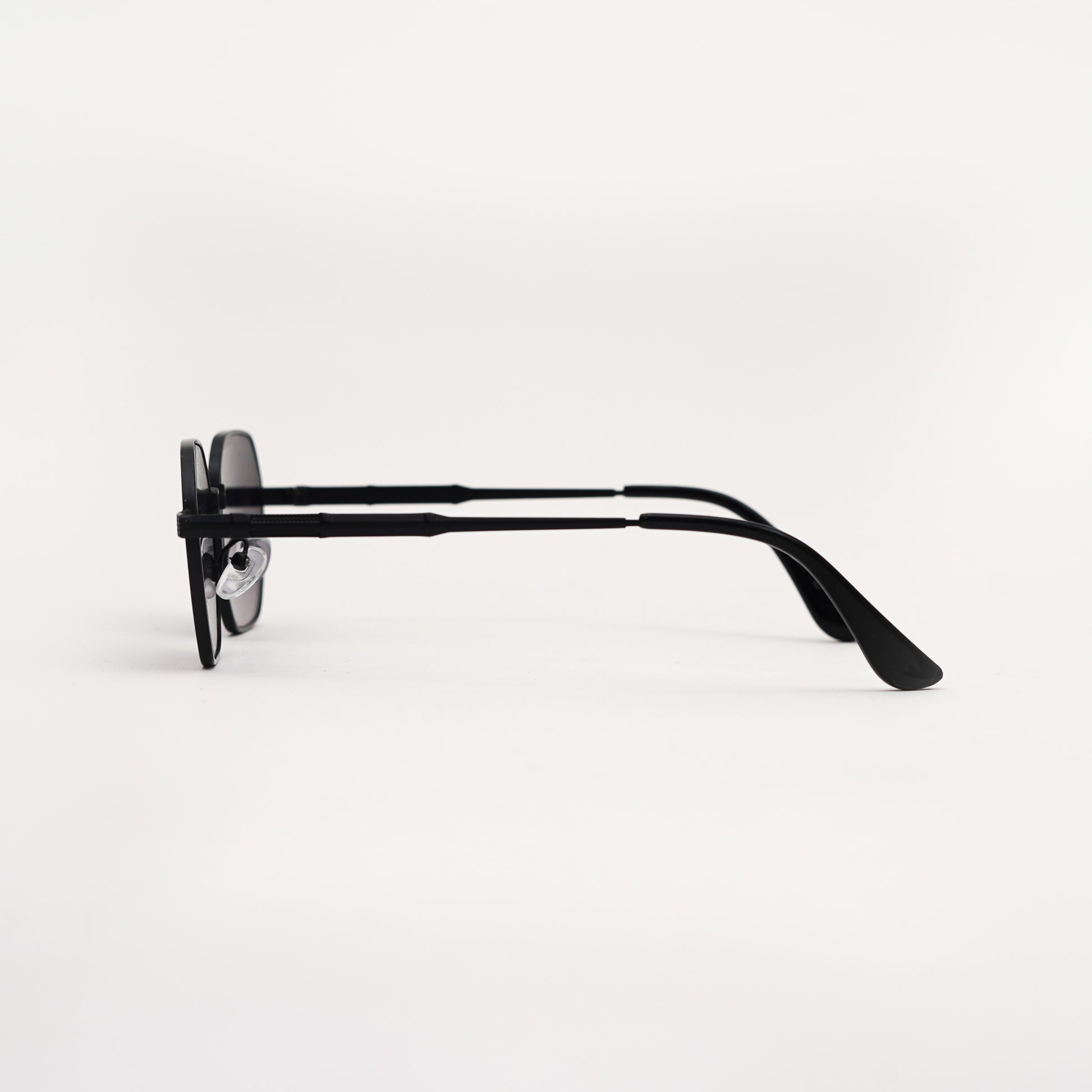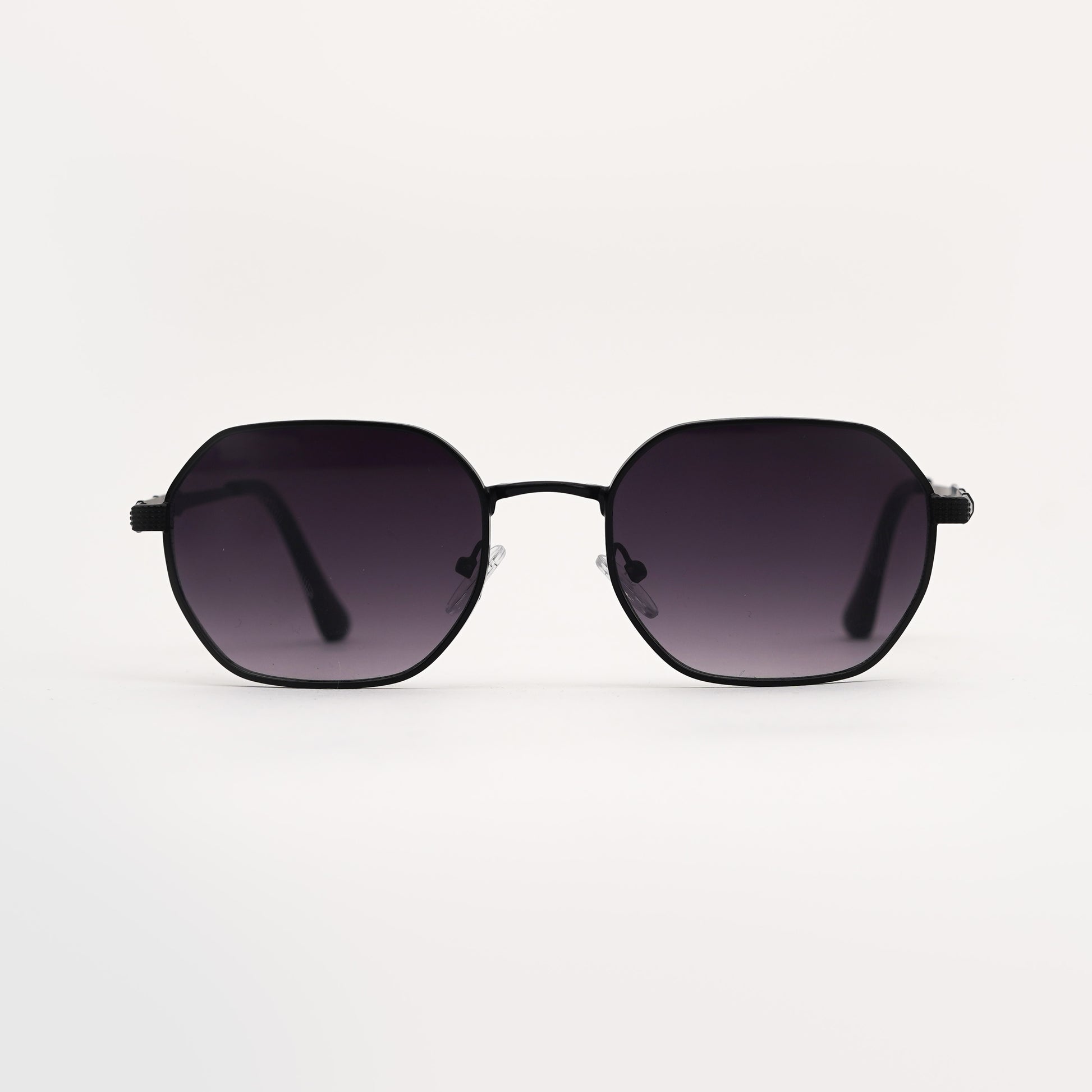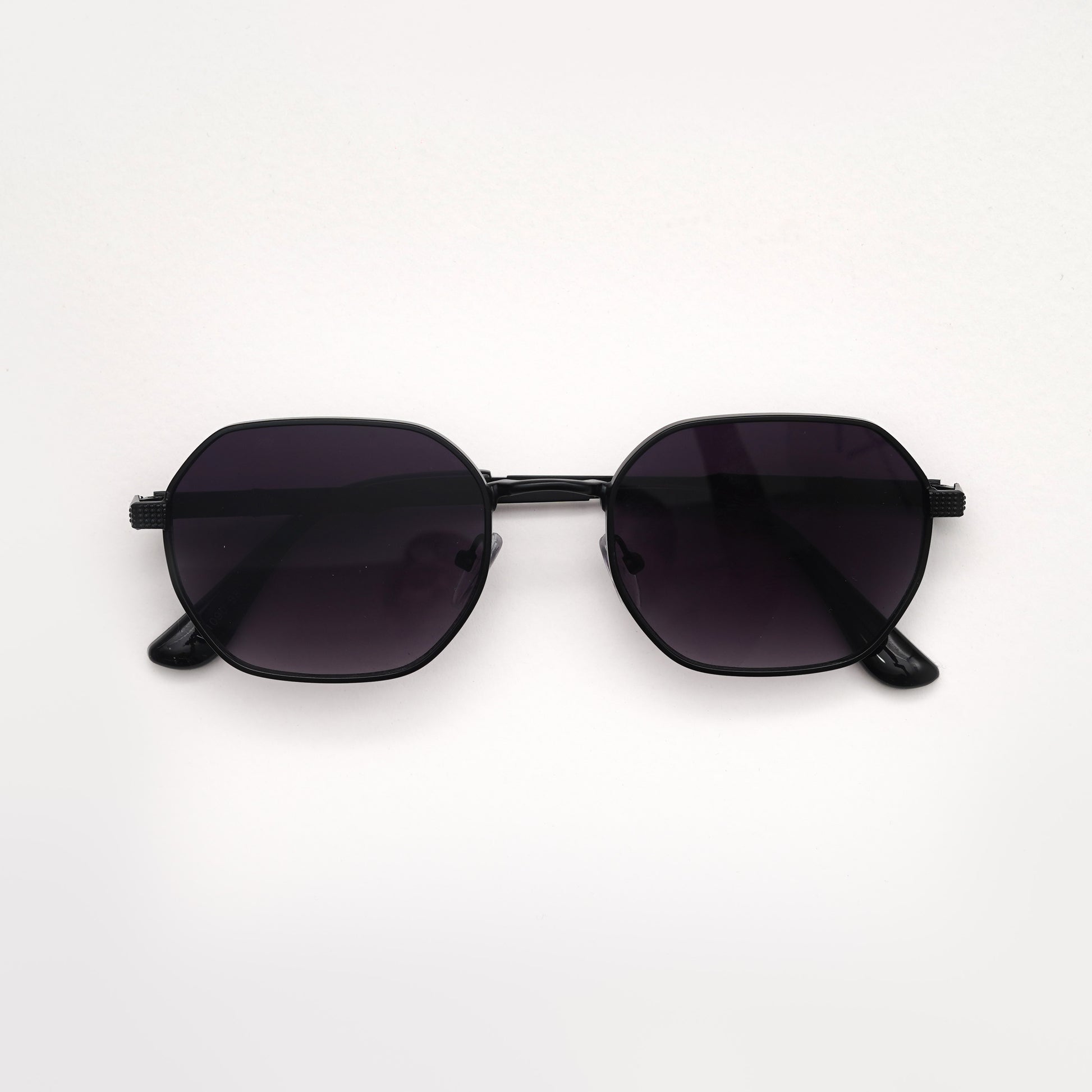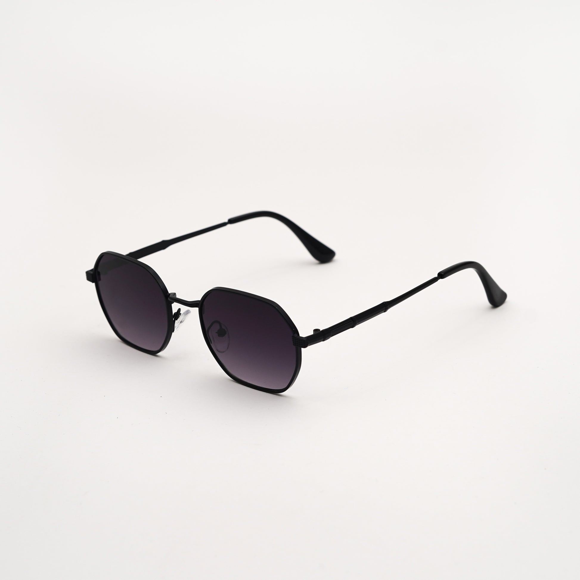 Orbit sunglasses feature a striking hexagonal black metal frame with deep black shaded lenses.