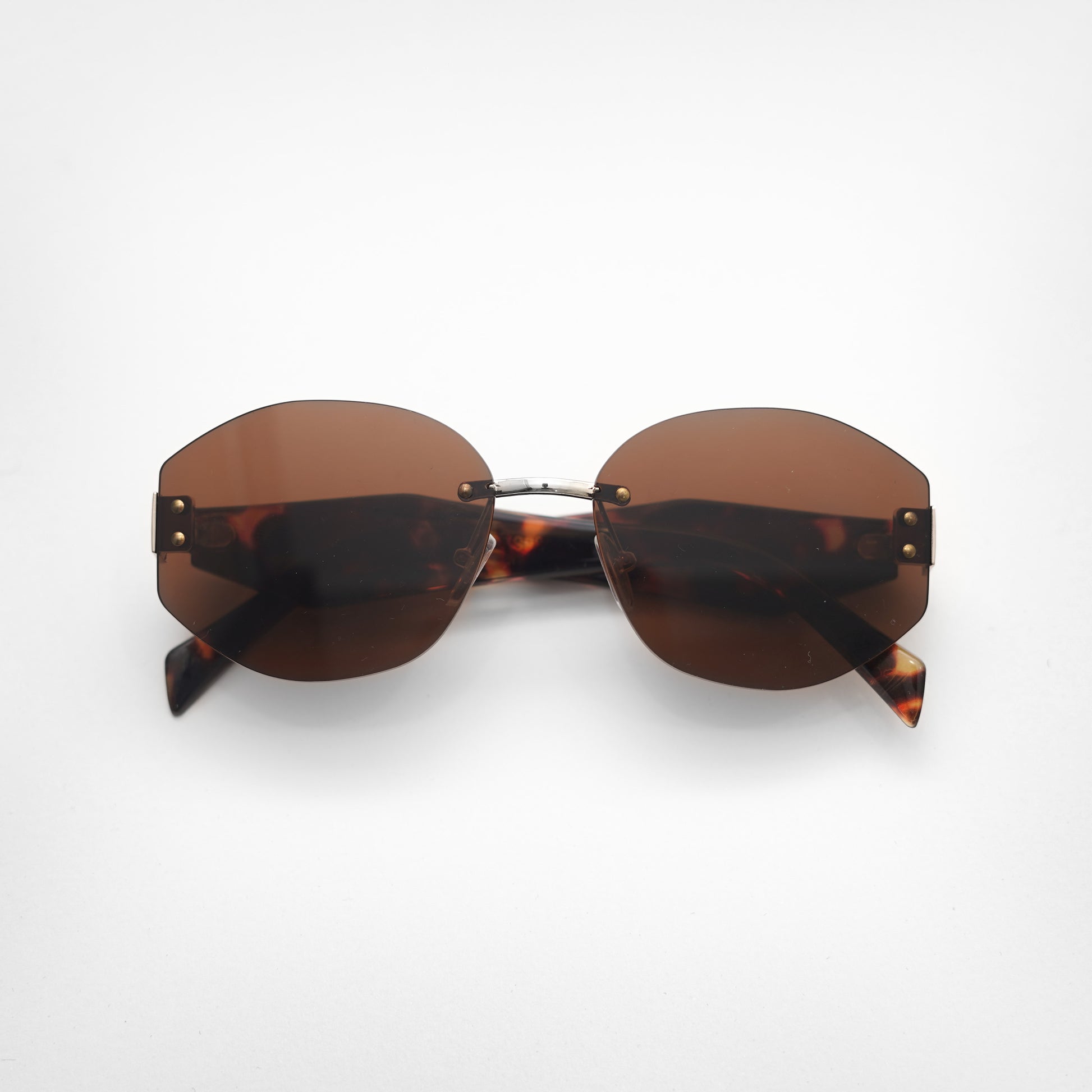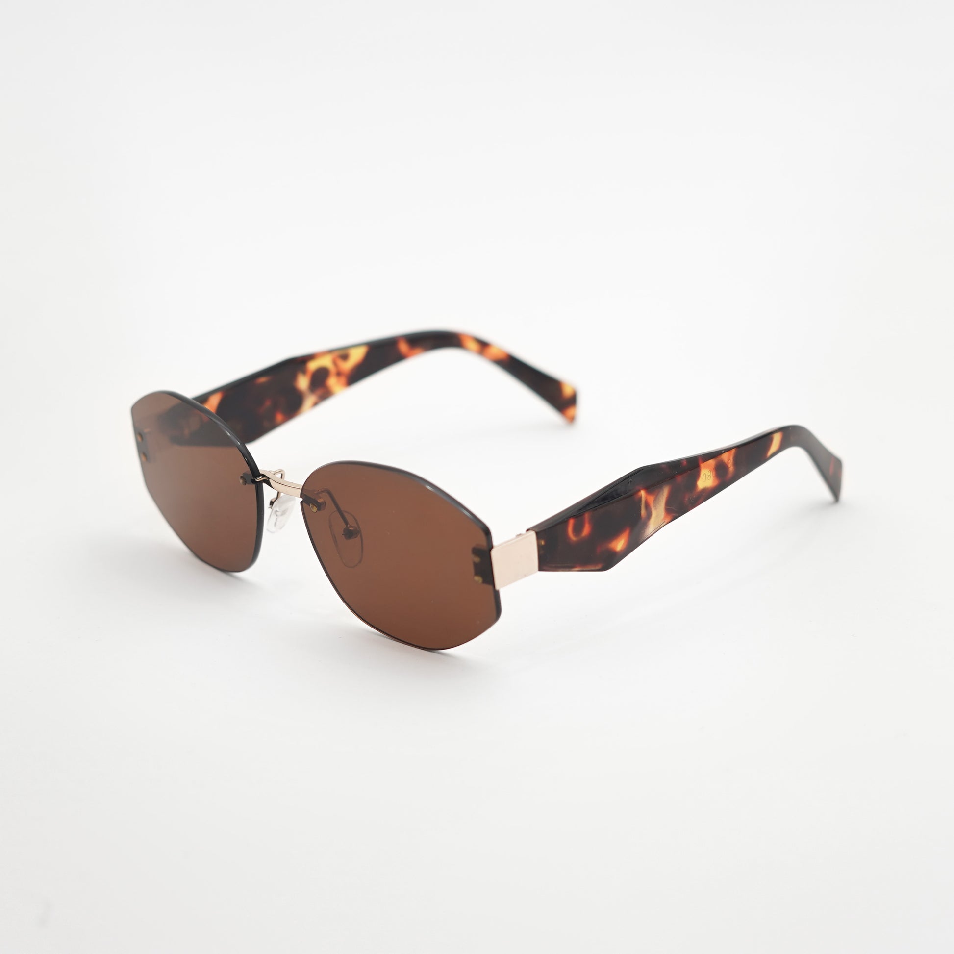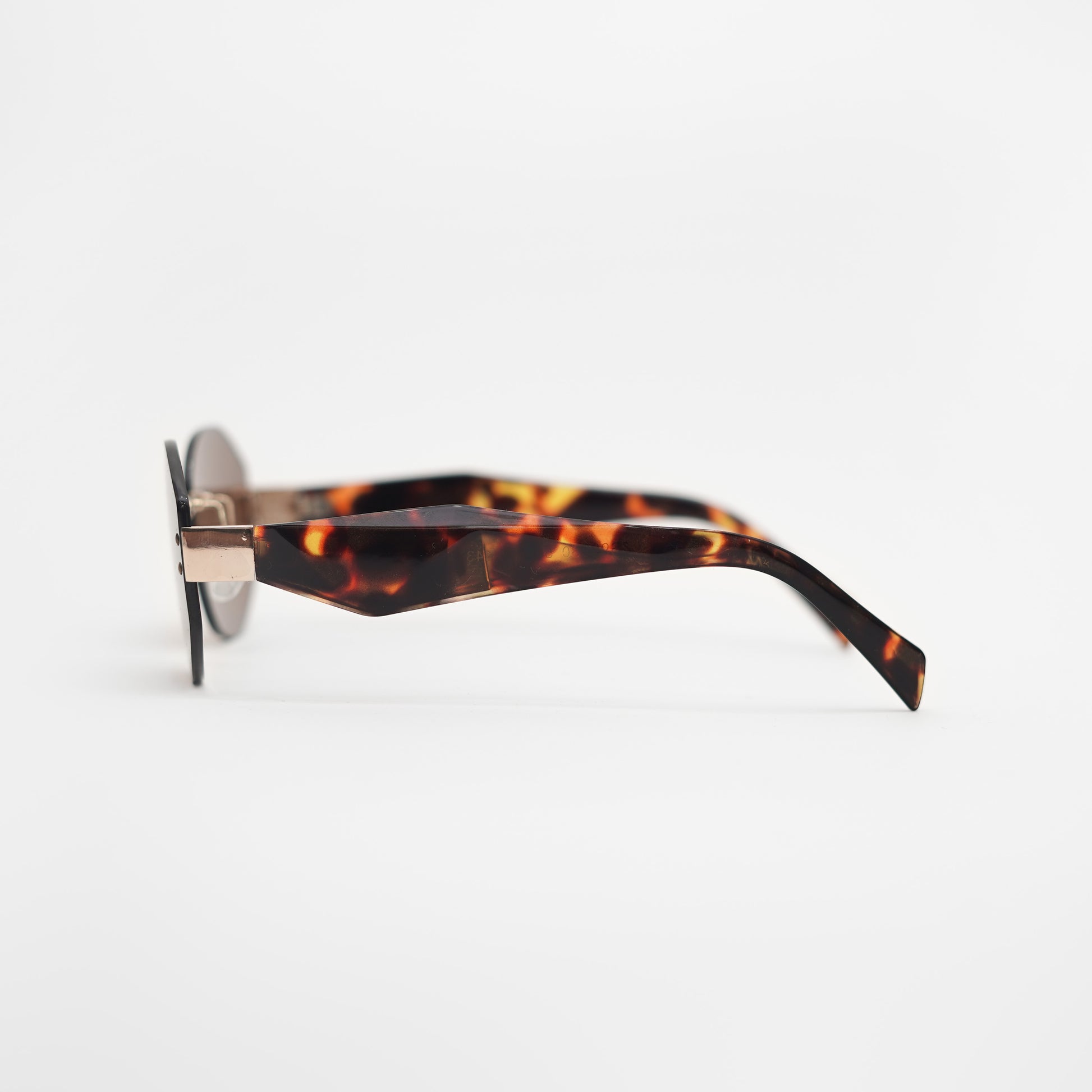 Frameless brown Geometrical Round shaped with golden and cheetah print sides.