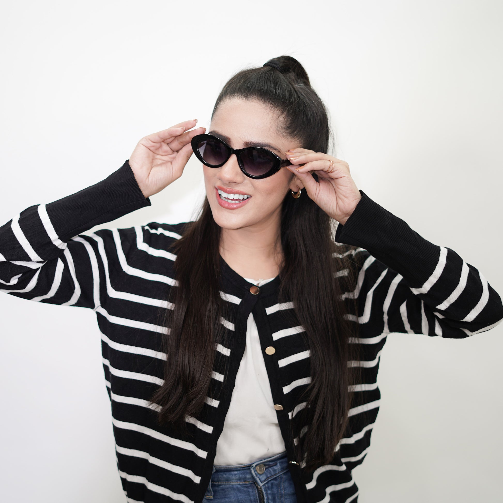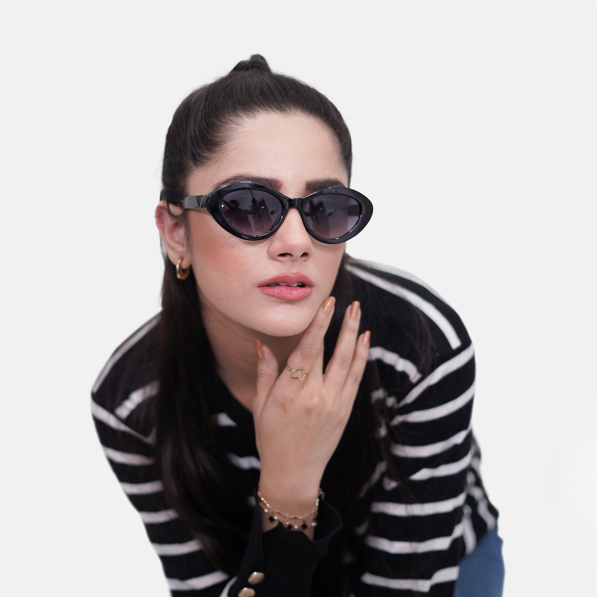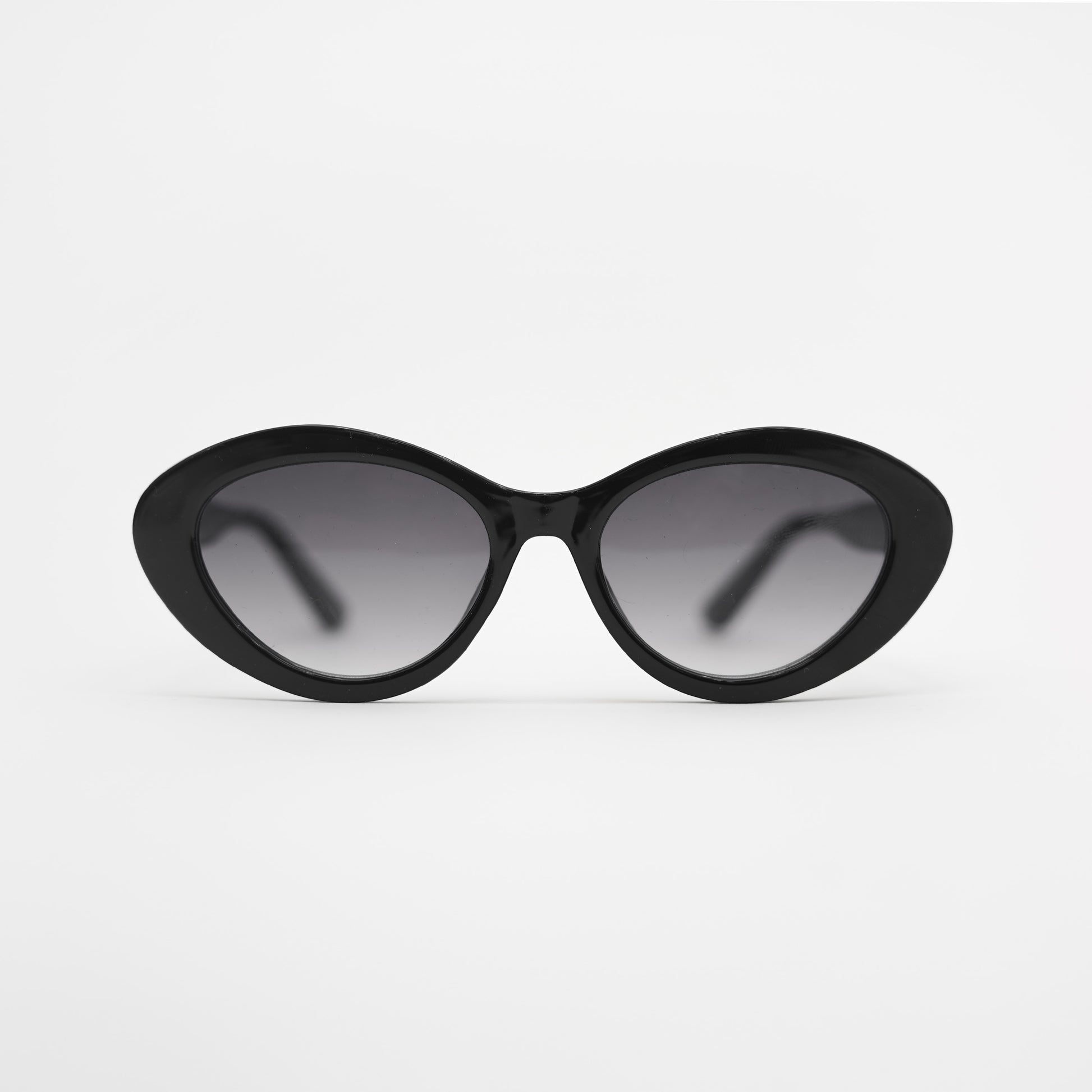 Black bold cat eye-shaped frame with black UV-protected glass.
