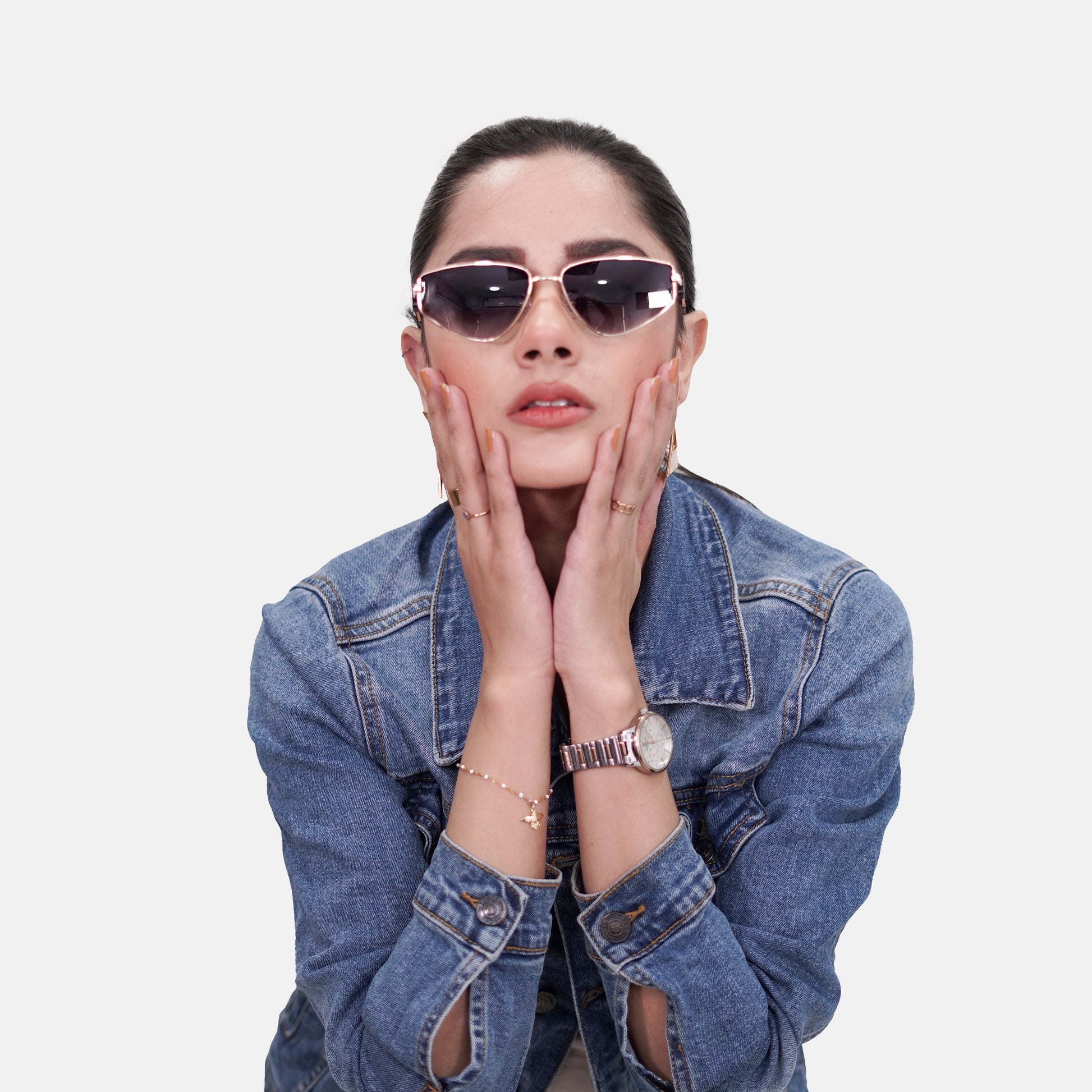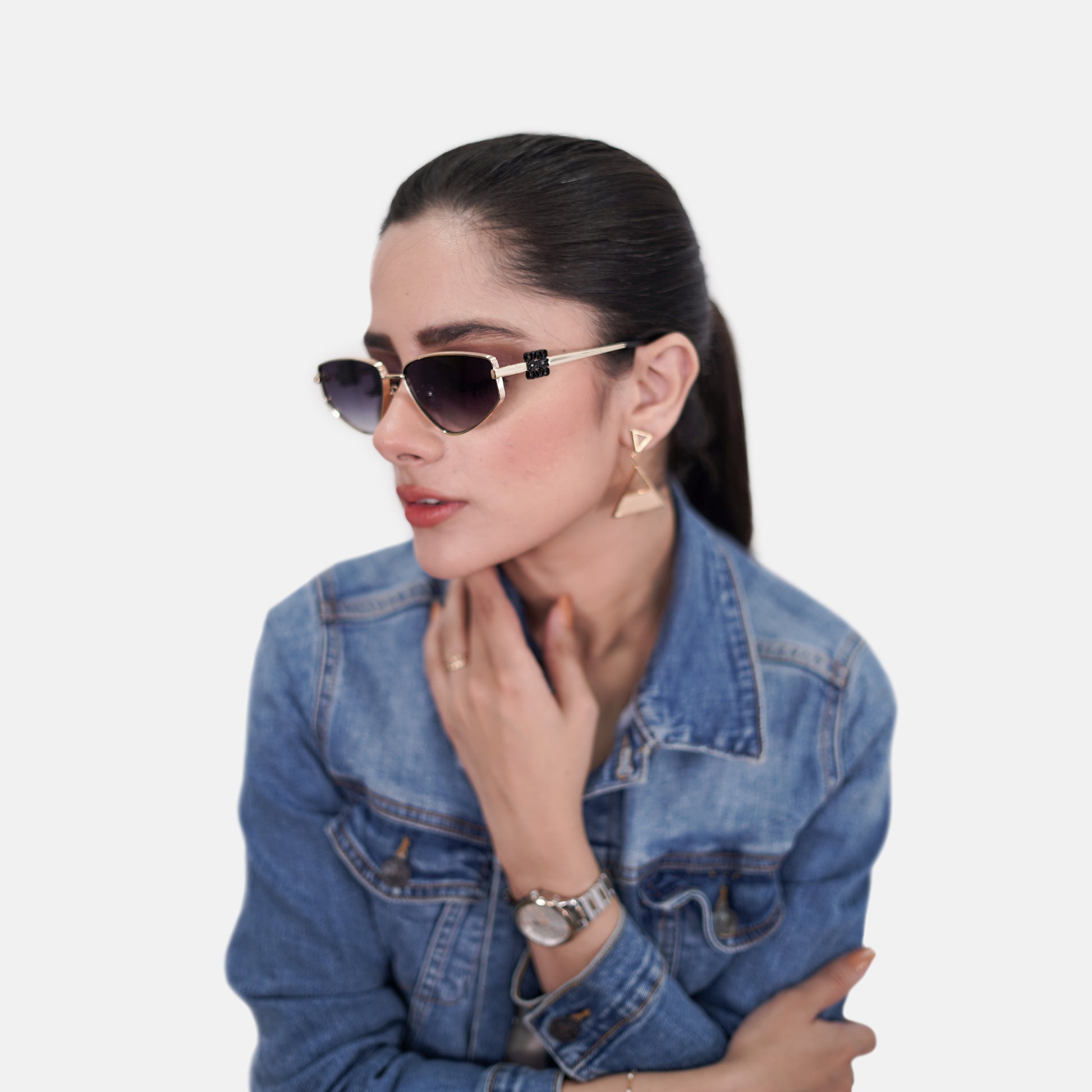 Golden Cat eye Shaped metal Frame with black shaded UV protected glasses