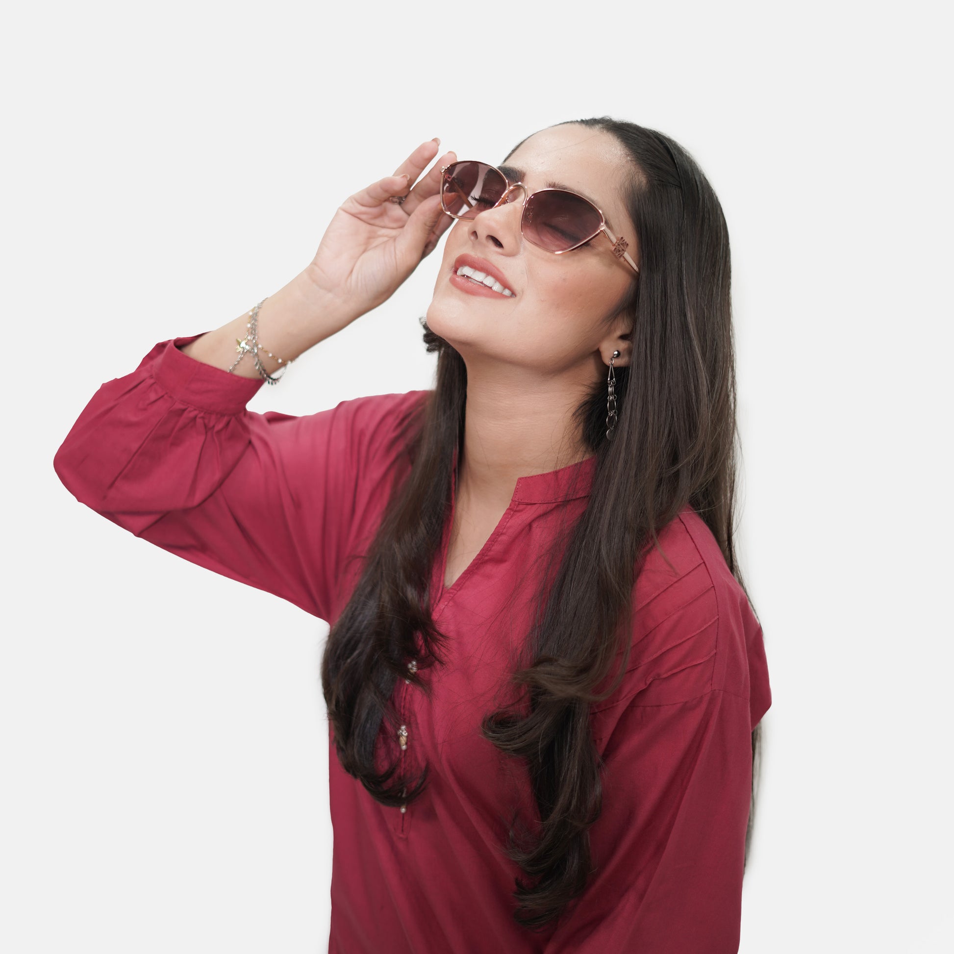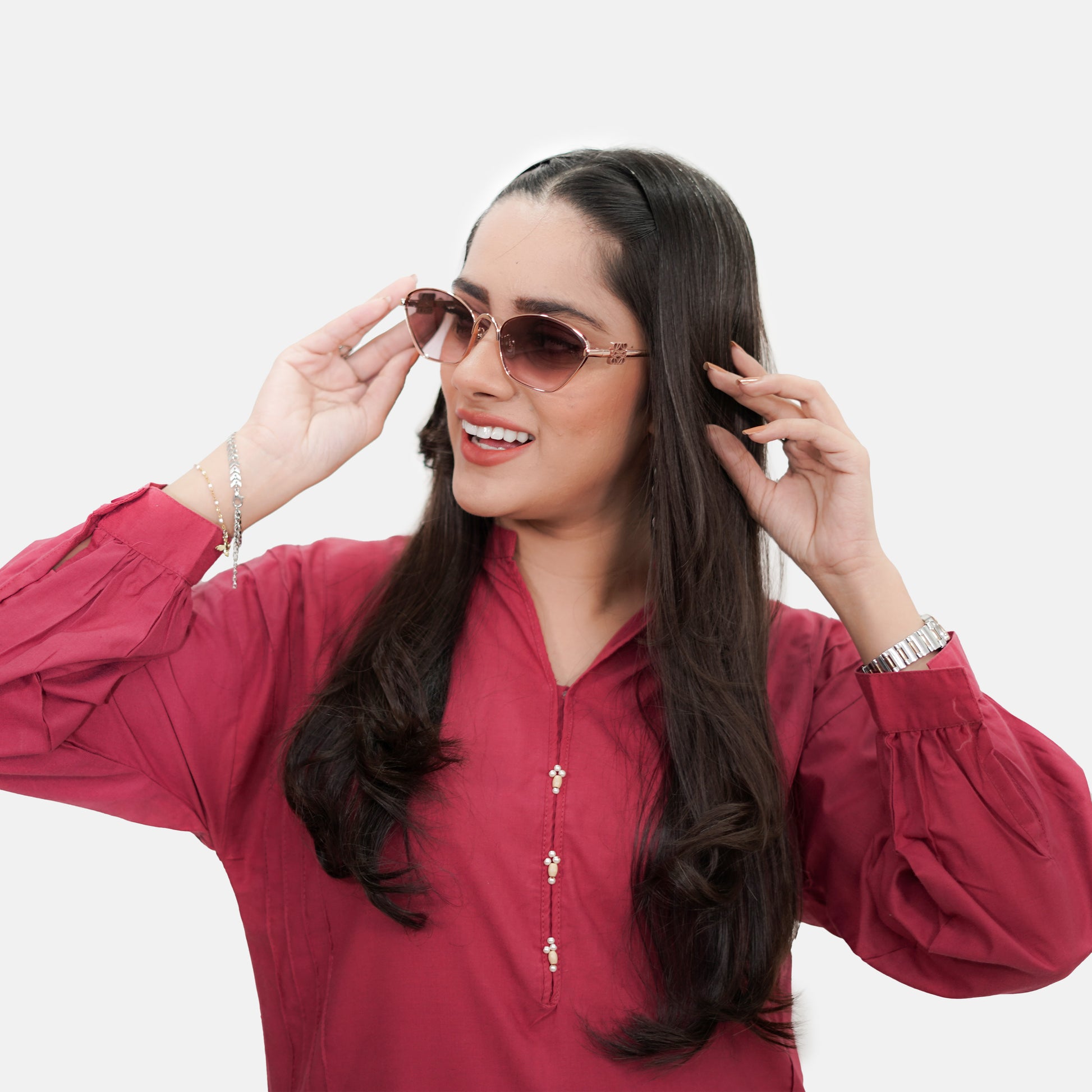 Rose gold Cat eye Shaped Metal frame with brown, pink double shaded glasses. Perfect for timeless day-to-night style.